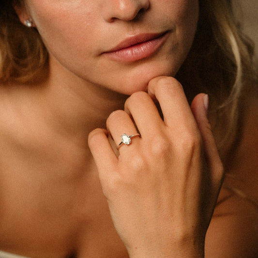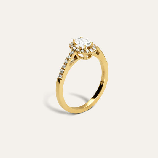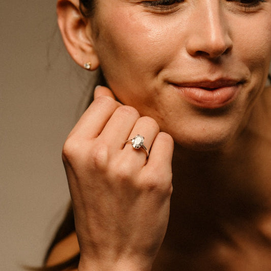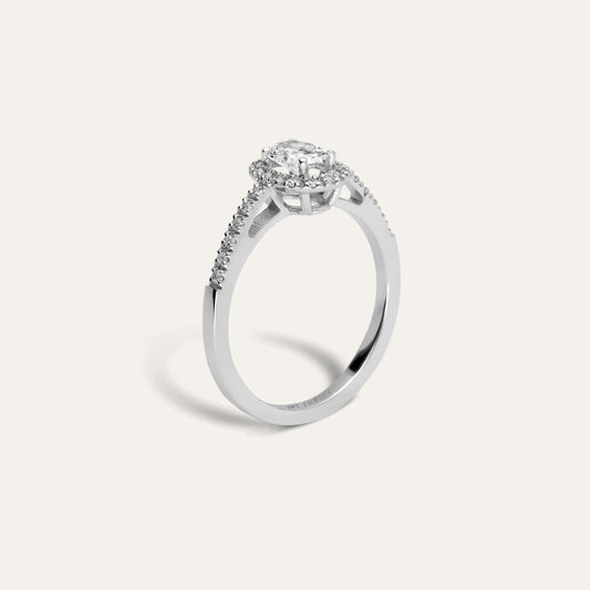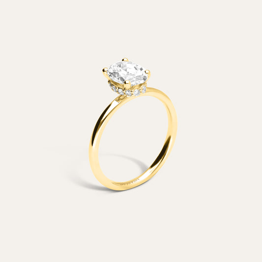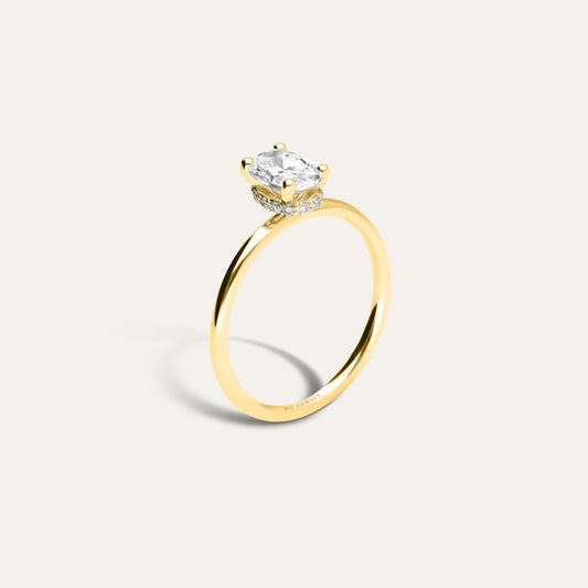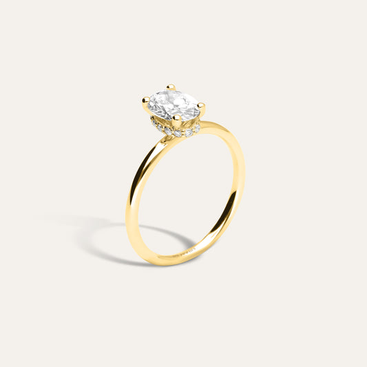 Oval pink engagement ring with hidden halo (2.26 ct)