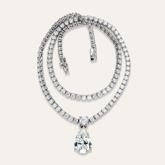 18k Gold tennis necklace with pear diamond pendant (19.14ct total)